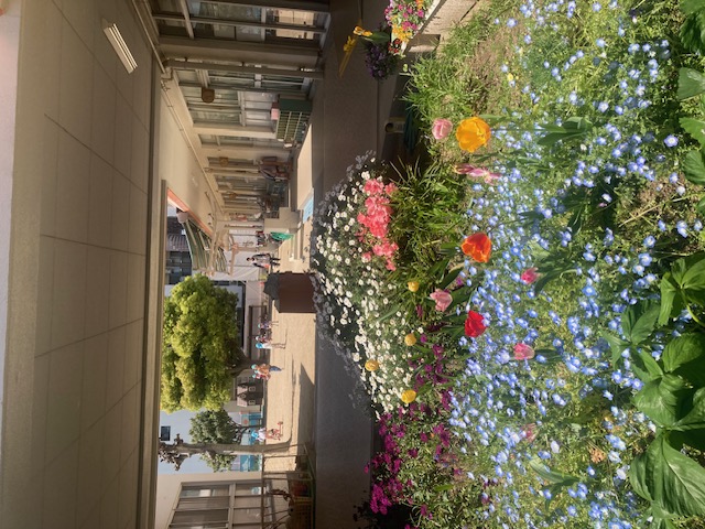 正門の桜🌸や中庭のお花が綺麗に咲き入所・進級を祝ってくれているようです。